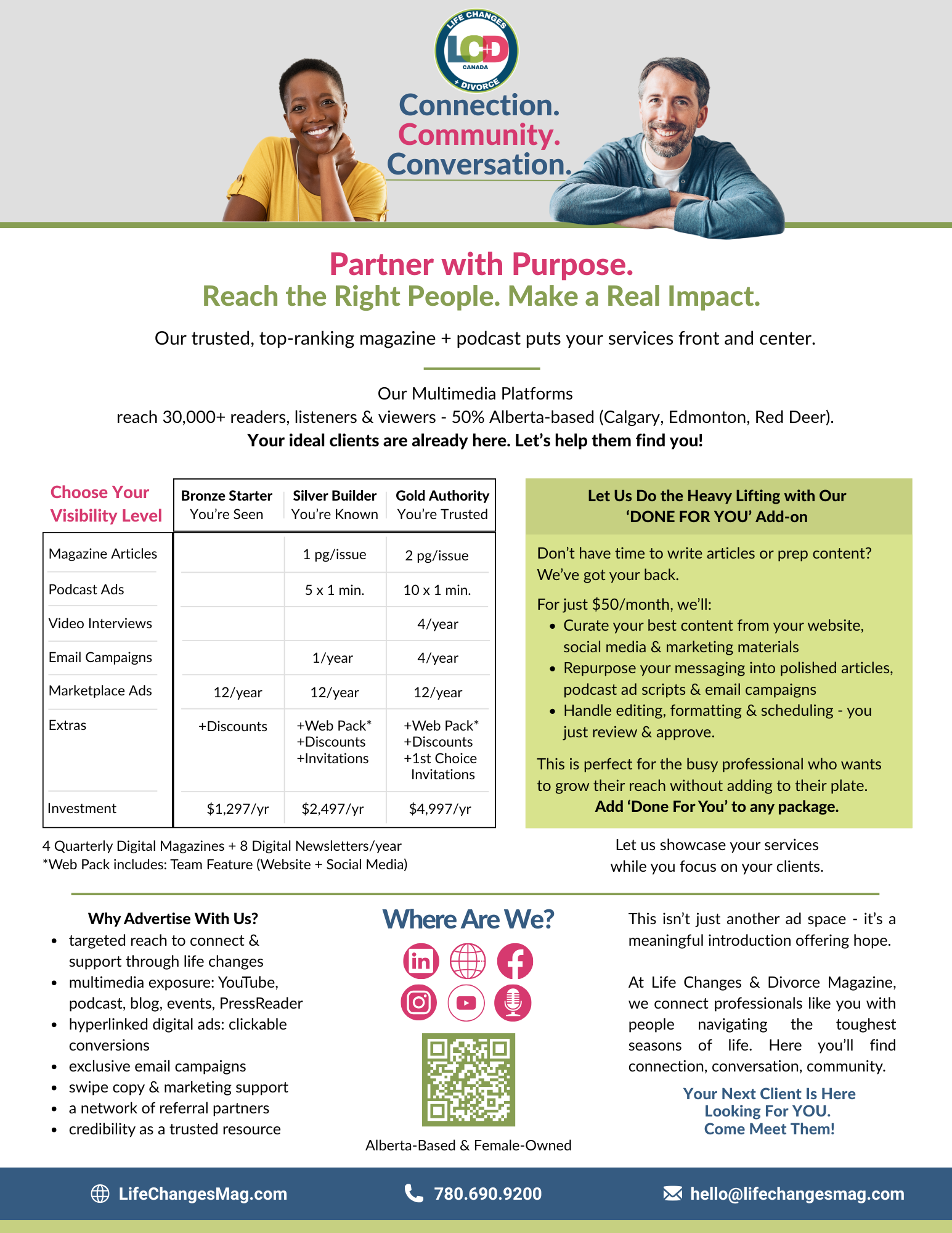 For a limited time when you advertise in Life Changes Magazine**, you get $200 OFF a LIVE ON-AIR INTERVIEW!
